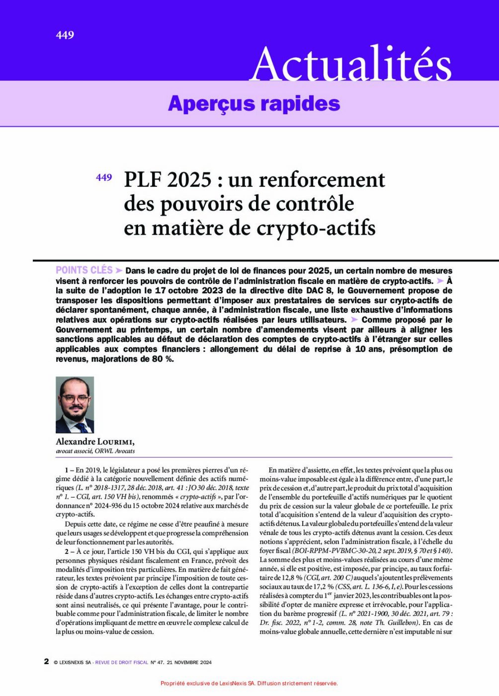 ![[Doctrine] PLF 2025 : un renforcement des pouvoirs de contrôle en matière de crypto-actifs (Revue de droit fiscal)](https://www.orwl.fr/wp-content/uploads/zdzdzd-1080x612.jpg)