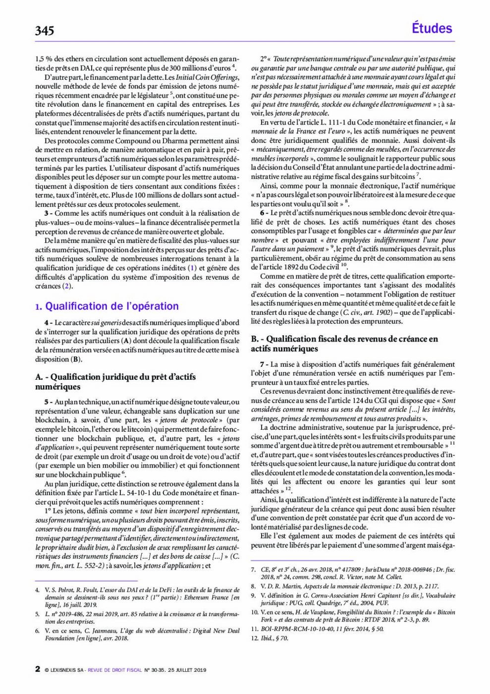 [Doctrine] Fiscalité de l’open finance : le traitement fiscal des intérêts de prêts sur actifs numériques (Revue de droit fiscal)